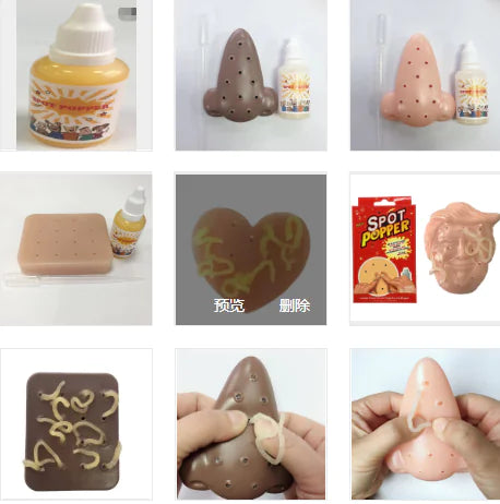 OPP bag packaging diagram: The shipping is a set, including a squeezing acne toy, a bottle of 30ml added liquid, a dropper, a manual